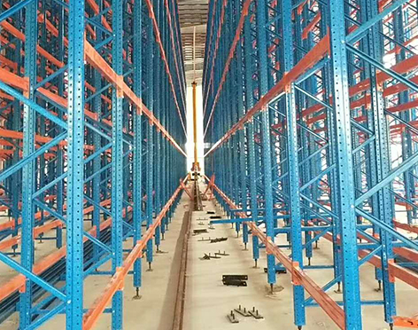 结构特点:由立柱、横梁、支撑杆等构成,类似横梁式货架但更精密,稳定性强。底部加装三向堆垛叉车行动导轨(常用不等边角钢),货架高度可达10-15米,通道宽1.6-2米,仅容一台叉车,叉车沿导轨滑行作业。