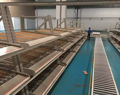 结构组成:通常由中型横梁式货架演变而来,由货架柱片、流利条层面组成,有时配合钢层板使用。流利条多由银轮铝合金、钣金、工程塑料制成,层面呈一定坡度(3°左右)放置,货物置于塑料周转箱或纸箱中,靠自身重力下滑。